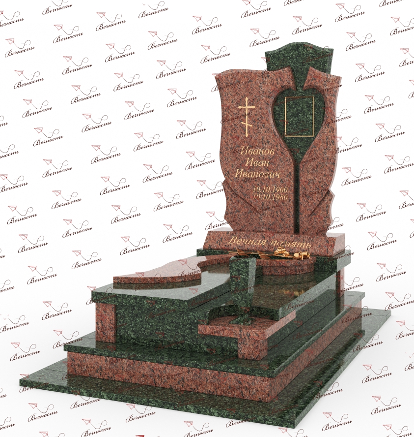 Памятник представляет собой комбинацию двух гранитов: Балтик Грин и Лезниковский.